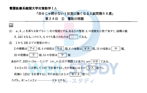 数学1A問題集「自分じゃ探せない!初見に強くなる入試問題68選」例題